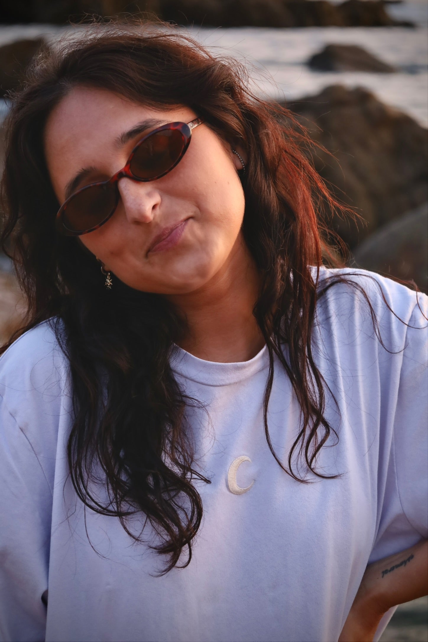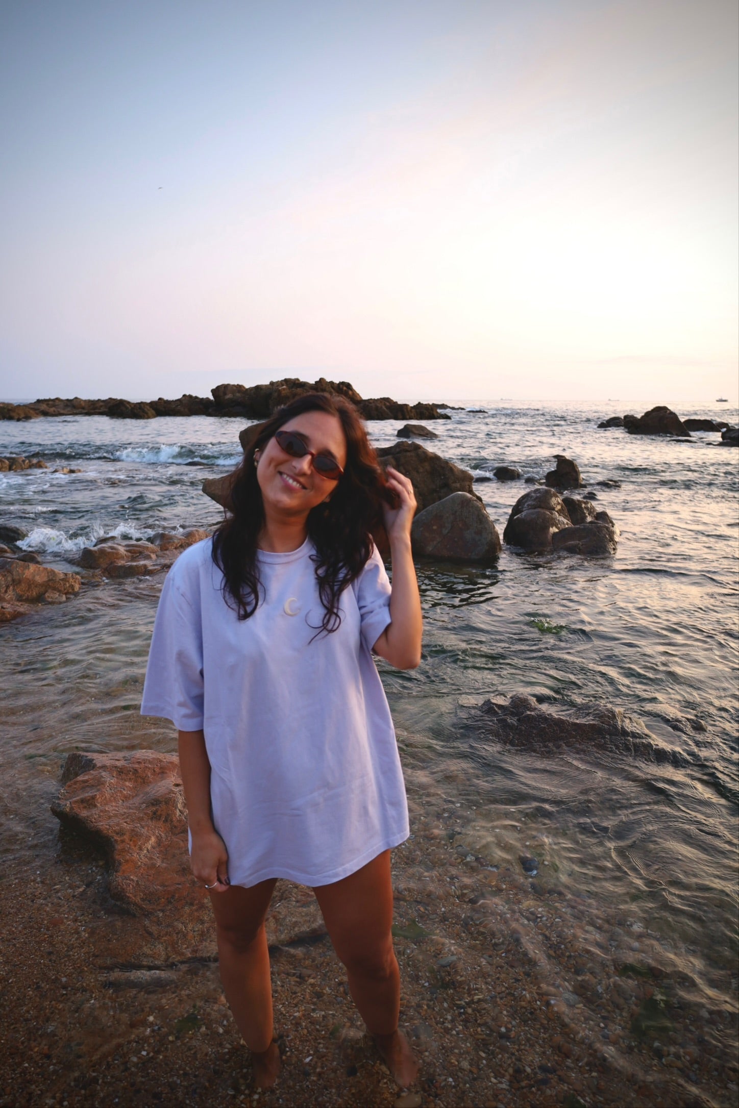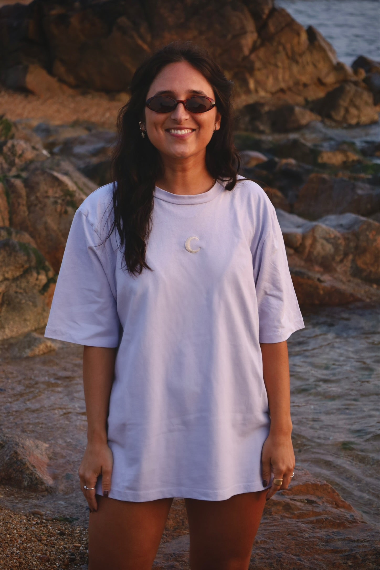 The Moon Tees have an oversized fit, designed to be loose, relaxed, and easy to wear.